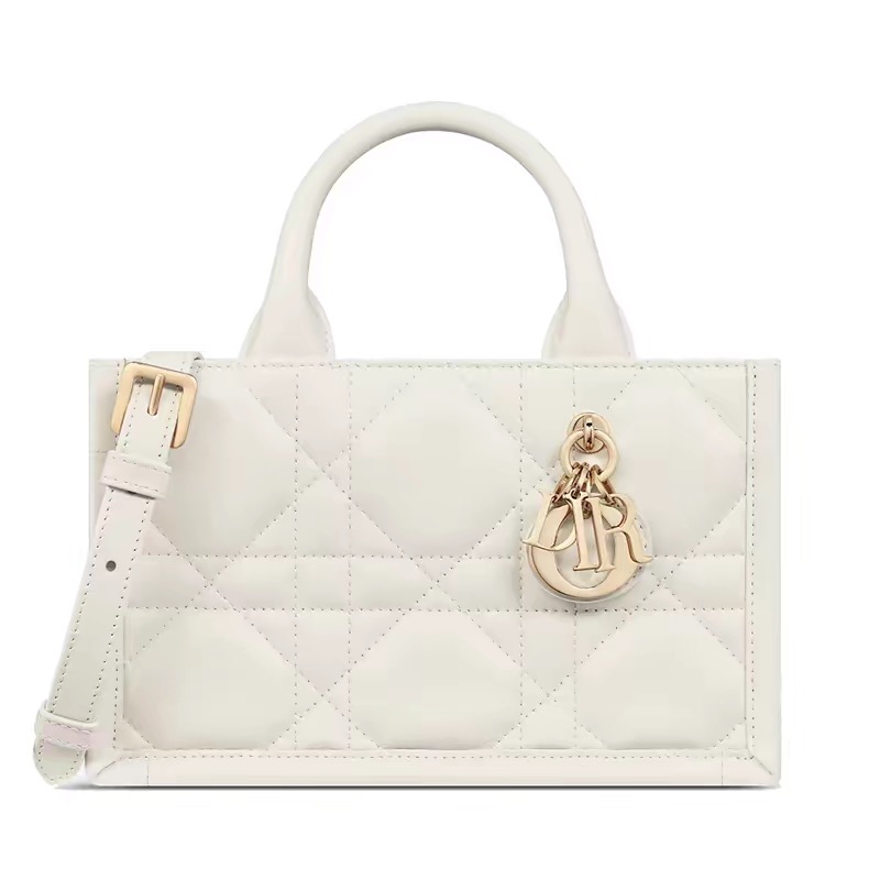 DIOR/迪奥 经典款LADY DIOR系列 女士微型浅黑色藤格纹羊皮革饰金扣单肩斜挎手提戴妃包S0856ONGE_M900